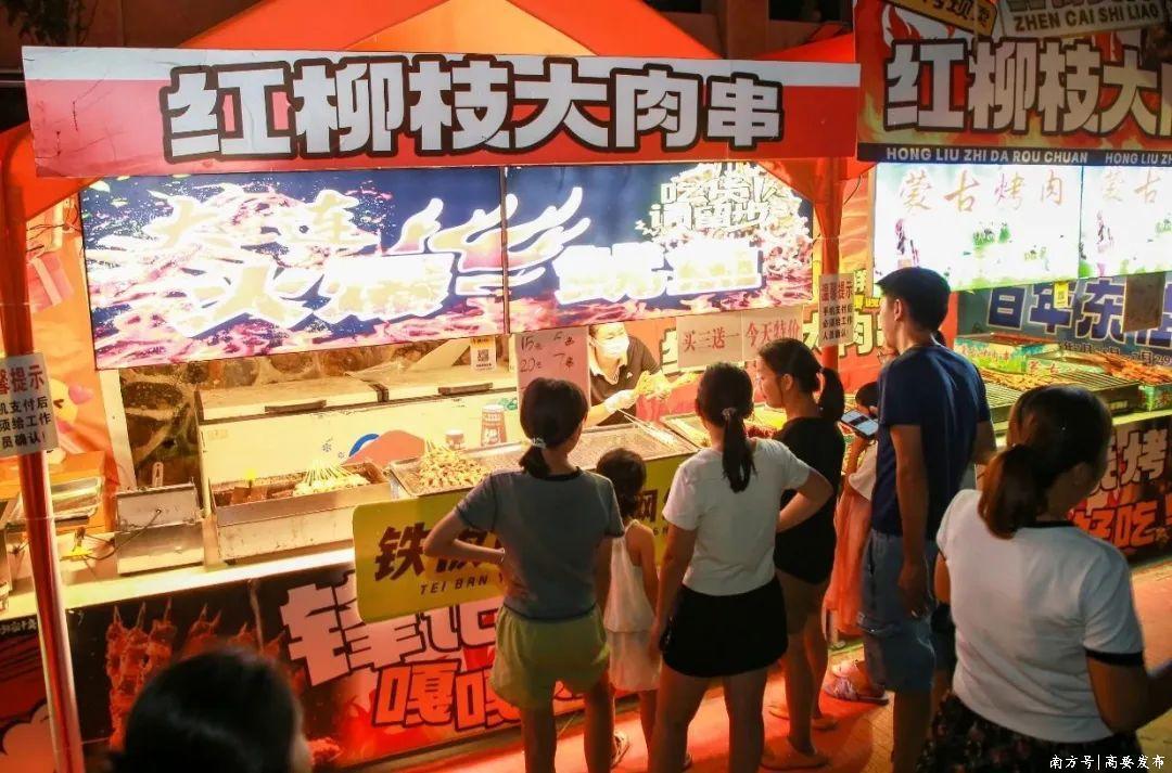 嗞嗞冒油的烤羊肉串、清凉诱人的冰淇淋、外酥里嫩的章鱼烧……从麻辣鲜香的川味烧烤,到清甜可口的广式甜品,每一款都能精准“狙击”食客的味蕾,摊主们各显神通,一边快速制作美食,一边热情招揽顾客。