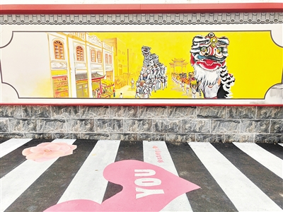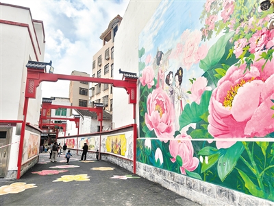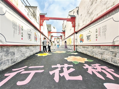现场不时有市民举起手机,对着墙面彩绘、地面图案细细拍摄,还有老人带着孩子辨认彩绘中的非遗元素,细声讲述元宵行花桥的习俗。“以前这里就是普通街巷,现在又好看又有文化味儿,以后遛弯、带娃都有了好地方。”市民李女士一边帮孩子与彩绘合影,一边笑着称赞。